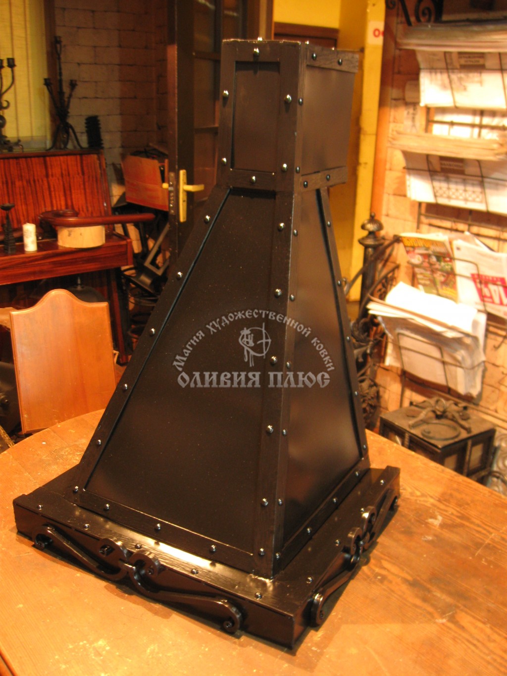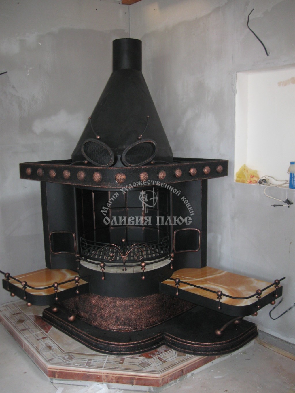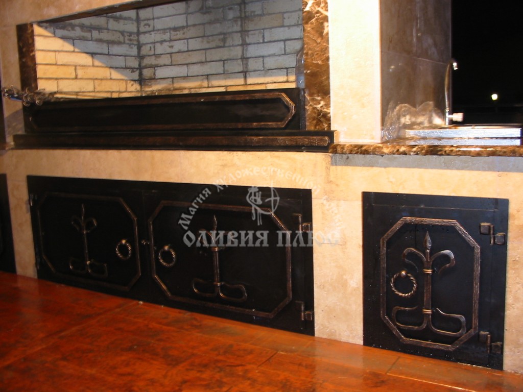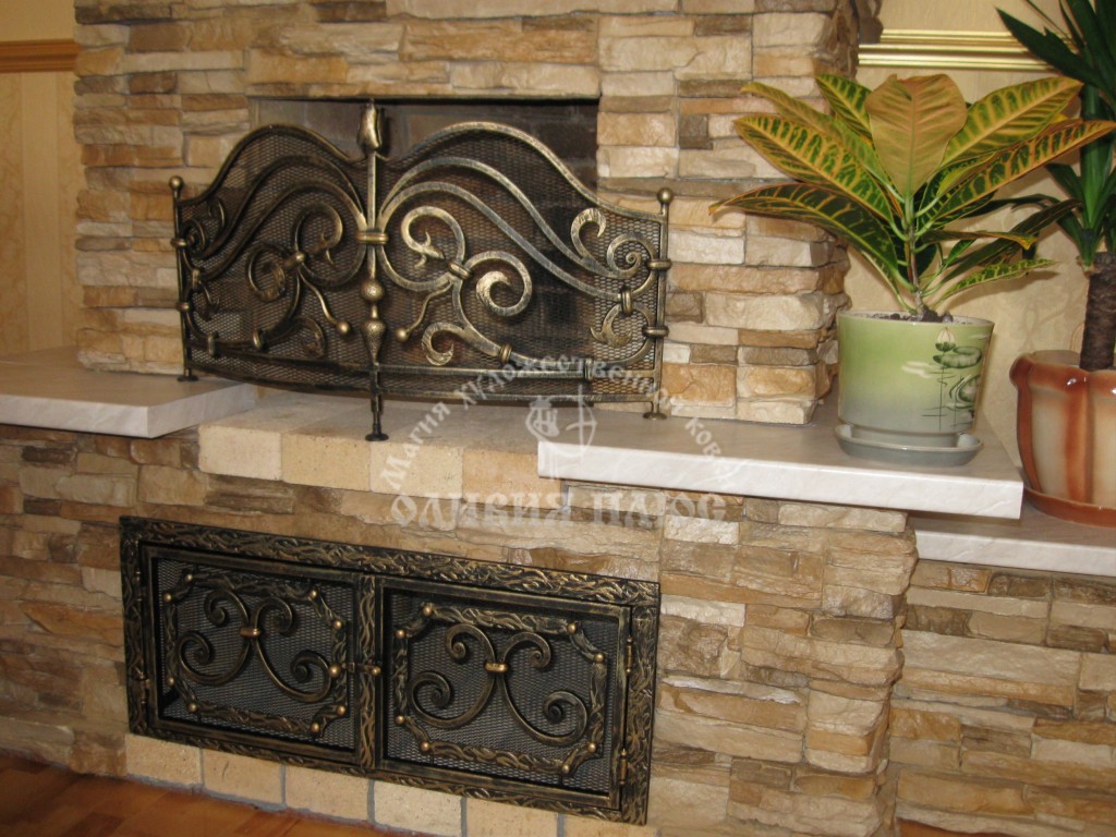 Камины из металла, решетки каминные, кованые аксессуары: наборы инструментов, заслонки на печи, экраны, мангалы, подставки под казаны, барбекю, обшивка медью.