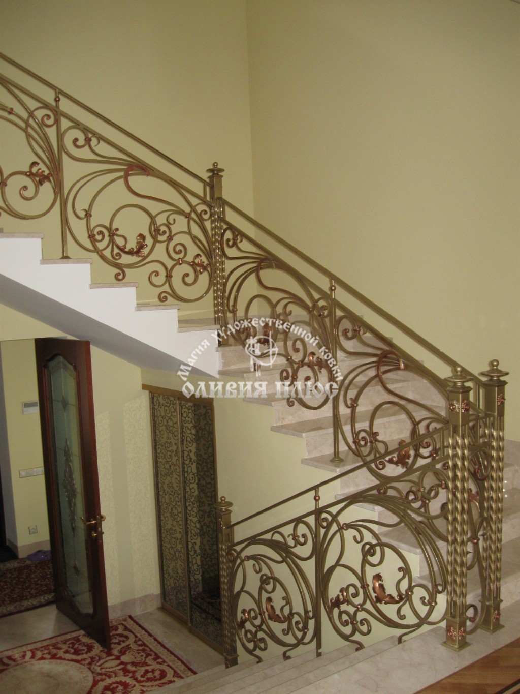 Сегодня лестницы Калуга можно заказать на любой вкус: деревянные, стеклянные, мраморные, однако наибольшим спросом пользуются кованые лестницы Калуга. Наша компания, ООО "Оливия плюс" обладает более чем 20 летним стажем в кузнечном деле. Мы отбираем и готовим наилучших кузнецов в регионе, а также изготавливаем кованые изделия любой сложности, начиная от мелких изделий, требующих ювелирной работы, заканчивая крупными, но, не менее прекрасными предметами, например: малые архитектурные сооружения, ограждения, ворота и лестницы Калуга. Кованые лестницы в Калуге можно заказать любого вида. Это может быть простая металлоконструкция - прямая лестница для входа в здание с прямыми современными перилами, спиральная лестница с изящными перилами для интерьера – все зависит от вашего вкуса и пожеланий, так как мастерство наших кузнецов границ не знает. Для изготовления лестниц мы используем металл, обладающий высокими прочностными характеристиками, и вы можете быть уверены, что сделанная нами кованая лестница прослужит долгие годы. Технологии сварки металла в кузнечном деле позволяют создавать надежные и безопасные лестницы. Если вам необходима лестница как украшение интерьера, наши дизайнеры произведут необходимые замеры и предложат наилучшие эскизы, идеально гармонирующие дизайном вашего помещения. Таким образом, кованая лестница станет изюминкой, привлекающей внимание гостей и радующей ваш эстетический вкус. Вы также можете выбрать наиболее подходящий для лестницы вид оформления. Это может быть однотонная порошковая покраска; патинирование золотой бронзой, медью, серебром или зеленью, придающее металлу эффект старины, или художественная роспись металла. Нами так же изготавливаются кованые перила для лестниц. Лестницы Калуга из других материалов, например дерева или мрамора, могут быть декорированы элементами художественной ковки от «Оливия плюс». Это придаст неповторимость лестнице и особую роскошь интерьеру.